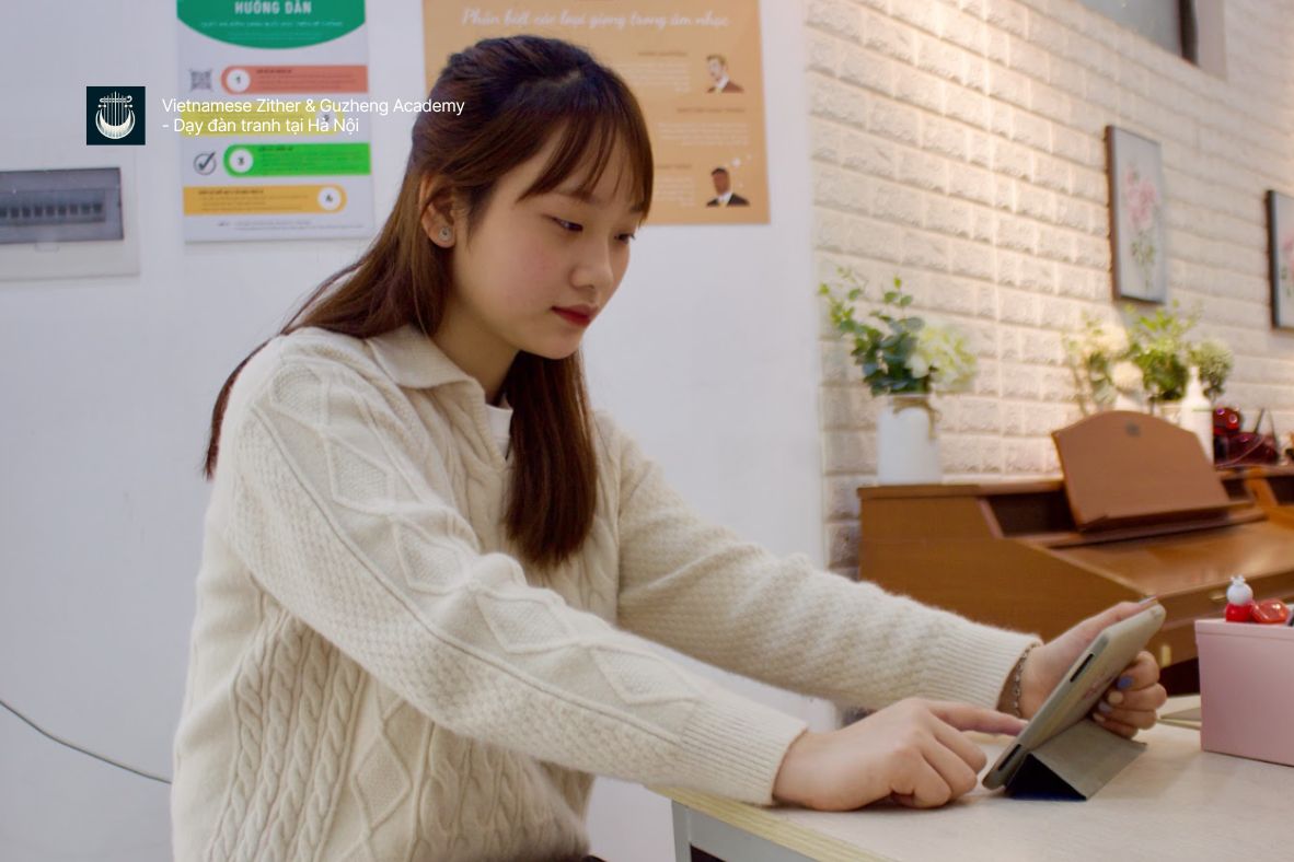 Bên cạnh việc học trực tiếp với giáo viên tại trung tâm, Vietnamese Zither & Guzheng Academy cũng khai thác lợi thế của nền tảng số để hỗ trợ học viên học tập ngoài giờ. Video hướng dẫn, nhóm Zalo, báo cáo học tập, trao đổi trực tuyến giúp người học duy trì thói quen luyện đàn đều đặn, kể cả khi không thể đến lớp. Điều này giúp việc học đàn trở nên linh hoạt hơn, người học có thể luyện tập tại nhà và nhận feedback của giáo viên, đặc biệt phù hợp với nhịp sống bận rộn hiện nay.